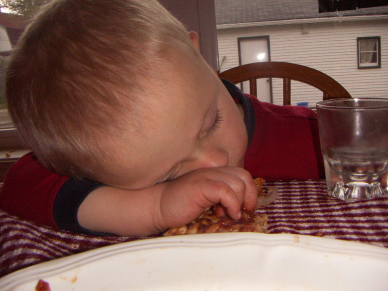 I, on the other hand, waited until he fell face first into his pizza so I could take pictures.