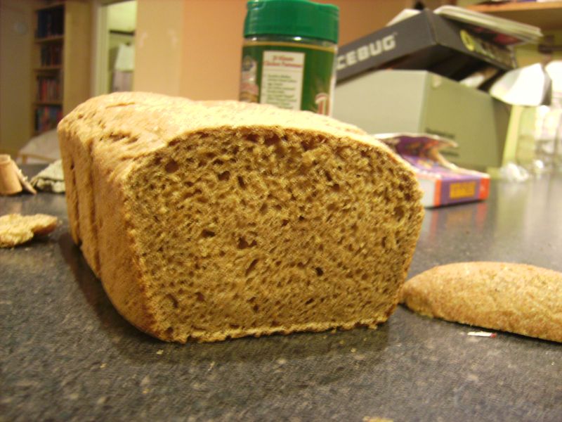 Both loaves — the one without sugar and the one without gluten — baked up to a similar texture, with a similar flavor. They're both a little short, but they still have a wonderfully soft texture — I guess that's the soaking.