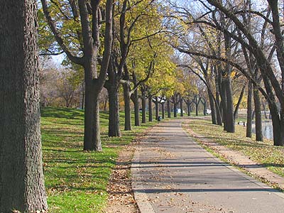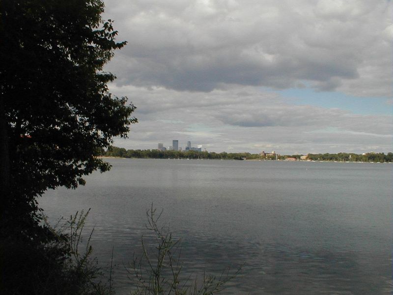 Bde Mka Ska is one of the “Chain of Lakes” here in Minneapolis, and is a prime walking/running/blading/cycling route.   Peoplewatching too.  There is a restaurant at the boathouse (haven’t been there yet).  Like all the water in the city (just about), it’s parkland all the way around, though the other side of the street is mixed residential and business.  The homes that surround the lake are a mix of gigantic mansions, condominiums, and much more modest dwellings.  Somebody will be waiting in the wings to buy those, knock ’em down, and put something more expensive in its place to sit and gaze out at the lake.