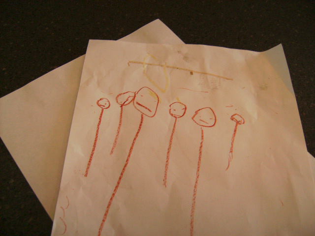 Hannah suggested that 3yo Mary Jane draw a garden of flowers. She said she couldn't. "Then draw just one flower," suggested Hannah.