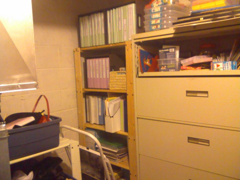There's also a little utility room off the basement which gives Melissa a small storage closet.  She got the giant institutional filing cabinet from Craigslist for $100.  Don't you wish you had one?