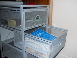 A few days ago I wrote about how I discovered that stacks of disorganized files, despite being ugly, can actually be an efficient way of dealing with many kinds of household paper records. They cost time in file-retrieval, but they save time in file-storage (since you don't have to take much time making folders and putting them in the right spots). This kind of storage is only appropriate if the piles stay where you put them, and if it's much more important that you be able to easily put files away than that you be able to easily retrieve them — that is, if it's okay if it takes you a while to find what you're looking for as long as you know it's in there somewhere.