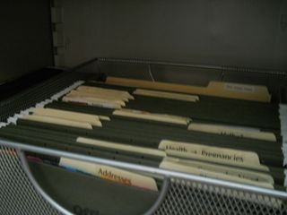 The reason I have time to put these away properly is because I don't deal with them every day. I only generate them once or a couple of times a year, and that's enough of a special occasion that I'm willing to take the time to file. For these, I keep a small box of hanging files.