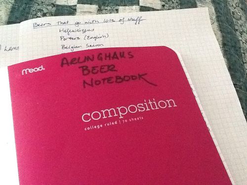 After fussing around a bit considering what made the most sense (start with easy-to-find and move towards rarer? Tote the notebook to restaurants and order the most obscure draft beer on the menu every time? Geographical organization?) I decided to start with the most useful beers, by which I mean the beers that were listed in the book as being quite versatile and going with a lot of different kinds of food. Theoretically, from among that set we would find something that we wanted to keep in the fridge all the time.