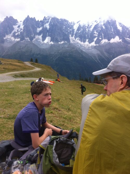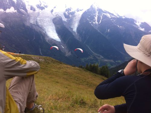 There were people paragliding off the mountain. We looked for a picnic spot from which we could watch. A friendly Brit suggested a place where there would be less risk of being struck by a paraglider swept by an errant draft.