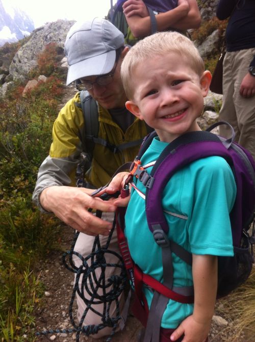 After watching them for a while and finishing lunch we went to hike around on the mountain. Mark put the four year old on a short rope for safety. He said it was easier than holding his hand.