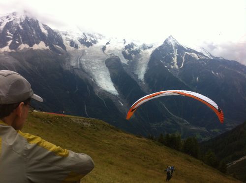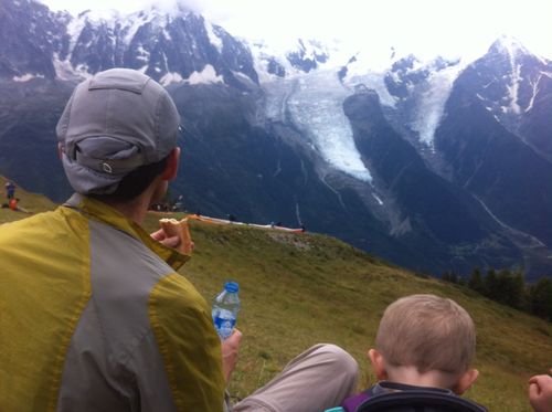 There were people paragliding off the mountain. We looked for a picnic spot from which we could watch. A friendly Brit suggested a place where there would be less risk of being struck by a paraglider swept by an errant draft.