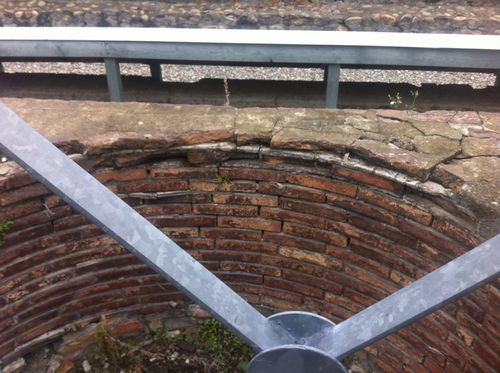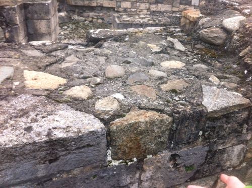 And see the wall stones, cut into triangular shapes so as to present more surface area for adhesion to the concrete.