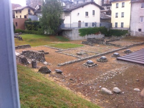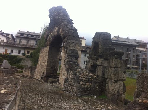 Aosta was once Augusta Praetoria Salassorum, a Roman camp-turned-planned-city strategically located near two mountain passes. It had a squarish layout crossed by two main roads that exited the city at four main gates. One such gate, the Porta Praetoria, remains in very good condition.