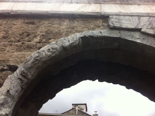 I wish I had a better picture. The gate is truly awesome. It is double-walled, and each wall is doubled in thickness. There is a beautiful, ripply stone on the outside, and some of the marble facing remains. There are niches on the outside for statues. It is still embedded in the Roman city wall, much of which continues around the city.