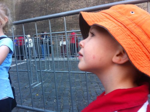 I had prepaid for a private tour from a company called Walks Inside Rome, recommended by a friend. WIR features several tours intended for children and families, including the “Treasure Hunt In The Vatican” tour. (We had also taken a private tour of the Colosseum and Forum from them on Wednesday). This was not cheap, mind you, but I could not think of a better way to include the younger children in this trip than to hire someone who had already done the legwork of identifying things that would interest them and guiding us quickly from one to the other.