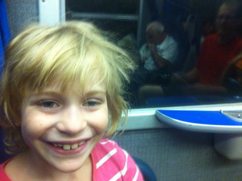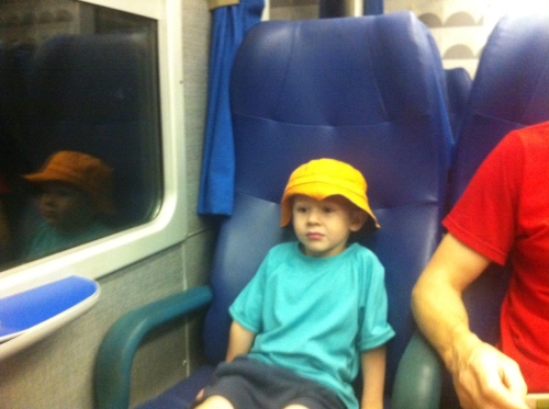 Rush to train station. Figure out which children are free and which are half price. Buy three full price round trip tickets and three half-price round-trip tickets. Rush to platform. Await train. Ask little old lady, “È questo il treno per Pisa?” just as the announcement starts to come over speaker, causing her to irritatedly make shushing noises before confirming it. Get on train. Collapse into seats.