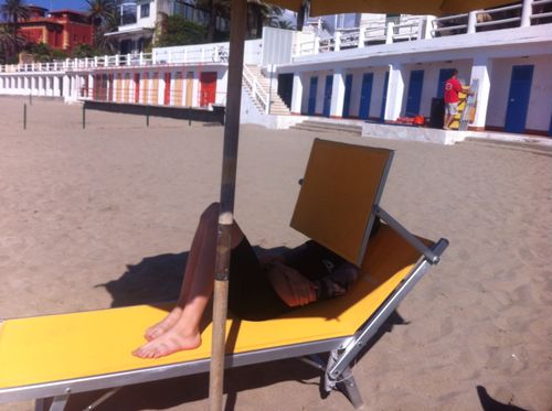 Pay a bunch of money to rent two umbrellas, three chairs, and a chaise longue.