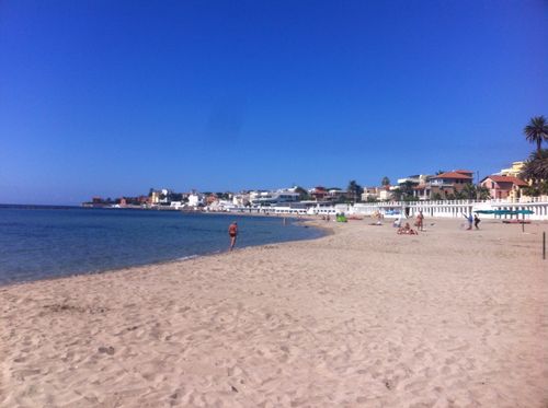 Ride 38 minutes to Santa Marinella, nervously following progress on Google Maps so as not to miss stop. Get off at tiny station. Walk about three blocks. Arrive here: