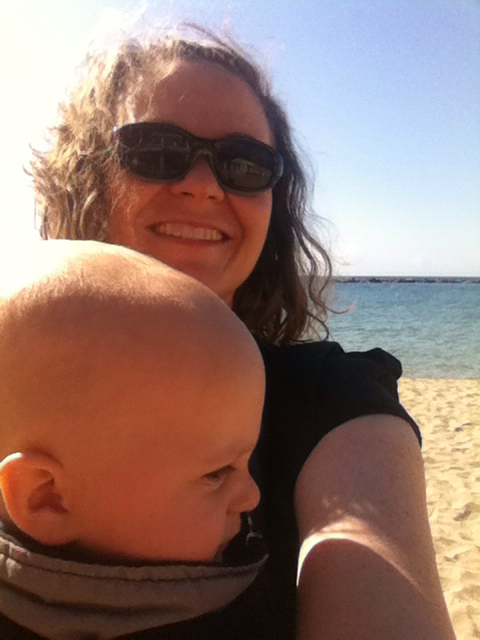 Put iPhone away so as not to get it wet and fail to take any more pictures. Fill day with splashing children, four-year-olds brandishing chunks of driftwood, moat-digging, babies with pirate bandanas tied on their heads and sand-stubble sticking to their faces, and a good deal of sitting in a chair under an umbrella next to one’s spouse watching the children and the sparkling sea and the gulls wheeling overhead, and thinking, “Damn, it could definitely be worse.”