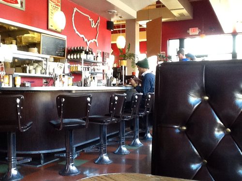 So I am sitting here in The Bad Waitress on a Saturday. I nearly always go out by myself on a Saturday morning. For a few years I made a point of trying lots of different breakfast spots. I have had some outstanding breakfasts, some of them memorable. After a while, though, I found that I settled down to a pattern of going to the same three places, unless an errand took me elsewhere. All three are open quite early, all three have wifi, all three will sell me caraway rye toast with my breakfast, and there the similarities mostly end.