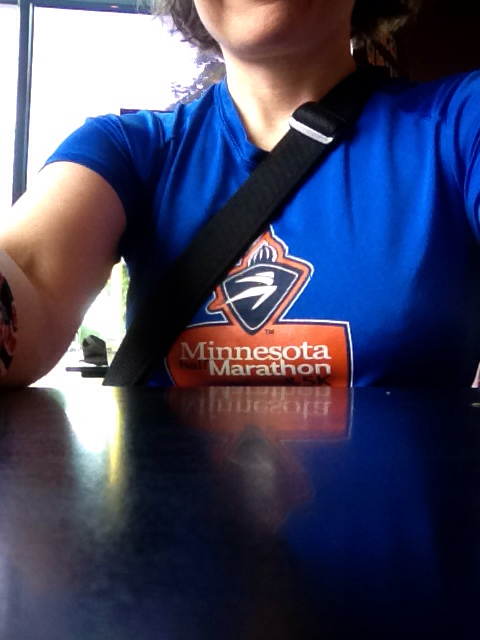I am thirsty. Large iced cold press in hand, no flavor but a shot of cream, I sit down for my post-run selfie so I can model my favorite running shirt. I call it the “Plausible Deniability” shirt: