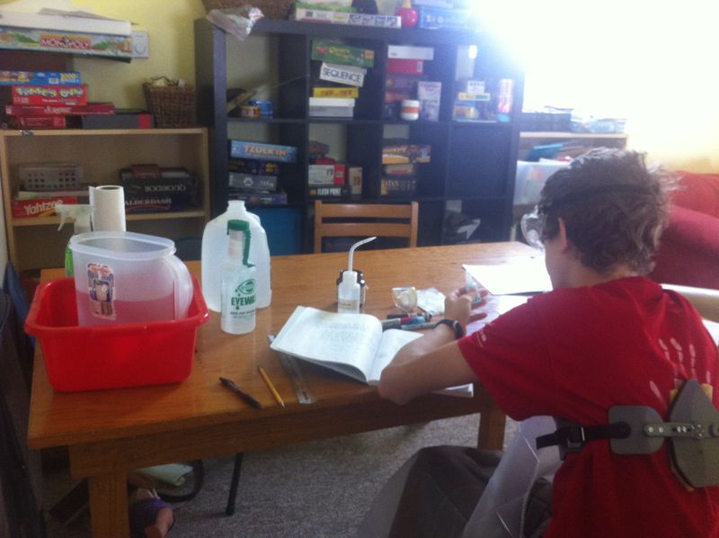 It's the perfect example of how to play to the strengths of this homeschool while mitigating its weaknesses (like no fume hood or convenient hazmat disposal.)