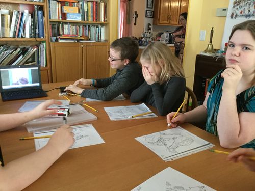 2. We aren’t done yet. I decided to spread the curriculum over 2 years at 2 one-hour sessions a week. I think you could finish it in a year if you planned ahead and did it daily, and under those circumstances it would “count” for all your social studies, art, and considerable copywork (because of all the map labeling). But I have to say the pacing seems just right at twice a week.