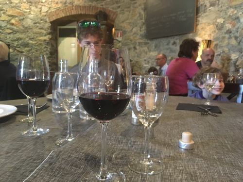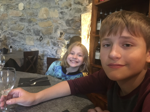 We gathered the children and went out walking, looking for a good full lunch. The first place we tried would not seat us without a reservation. So we walked back, and found a good-sized table at “Il Bastione,” a restaurant in a medieval stone tower.