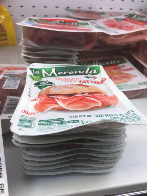 We stopped at the grocery on the way back for dinner food. Look! Proscuitto in single-serve packets: