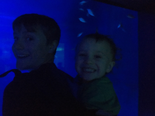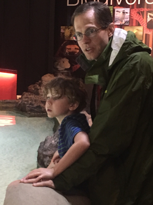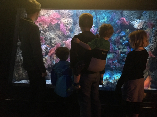 We all thought it was tremendous, from Mark down to the youngest. But it was that youngest who was really entranced. Our three-year-old’s favorite show is Octonauts, that cartoon about deep dives into the ocean among the sea creatures; and he spent the two hours of our visit in a state of utter delight. One of his brothers had him in the back carrier, so he didn’t tire, and he wanted to stay and look at every fish.