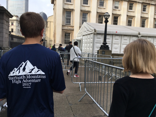 There is a little line outside just to get through security. They look in all your bags and purses and don’t allow large ones. They did not have a problem with the child carrier, but they do not like it if you absent-mindedly take a picture while you are in the security tent (ask me how I know).