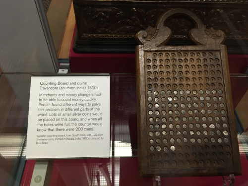 There were pieces of eight, I think the first ones I have ever seen up close, and a whole case of counterfeit British pounds. There were dies and tools for minting coins. There were examples of some of the world’s oldest paper money, Ming dynasty I think, a note about the size of a piece of A4 paper with a picture of a string of stacked hole-punched coins that was some sort of official measure, displayed next to a physical reconstruction of the same string of coins.