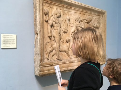 I decided to build a little endurance into the others by inviting them to pick a gallery to see before leaving. The 7yo refused, but the 11yo wanted to take a closer look at Greek and Roman things. She wasn’t interested in the Elgin marbles (the 7yo was a bit interested in the model of the Parthenon displayed in the entryway, but only for a moment), but in the statuary.