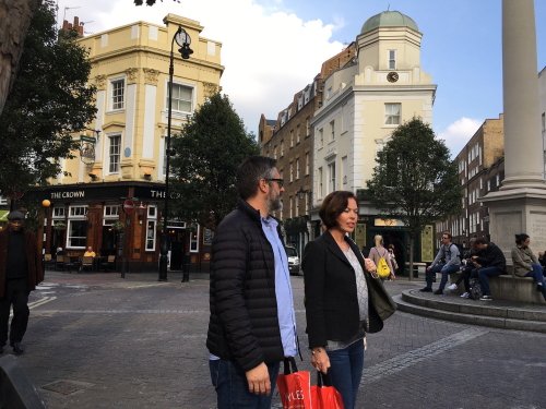 Tried on a couple of wool coats in a vintage store, but had no luck. I am not very attuned to fashion trends, but I have noticed the usefulness of a feminine look that appears common in this part of London in this cool weather: A well-made felt or wool coat, expensive but not ostentatious, either of the slightly battered and beloved variety or shapely and new with a b