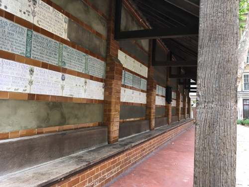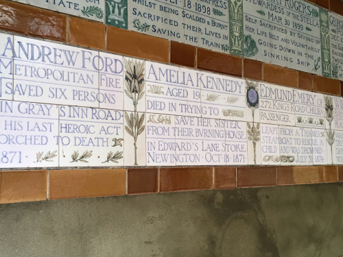 Postman’s Park, a little green jewel of a space, contained this intriguing sheltered wall of glazed-tile texts: