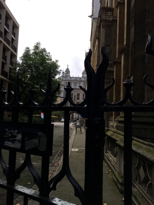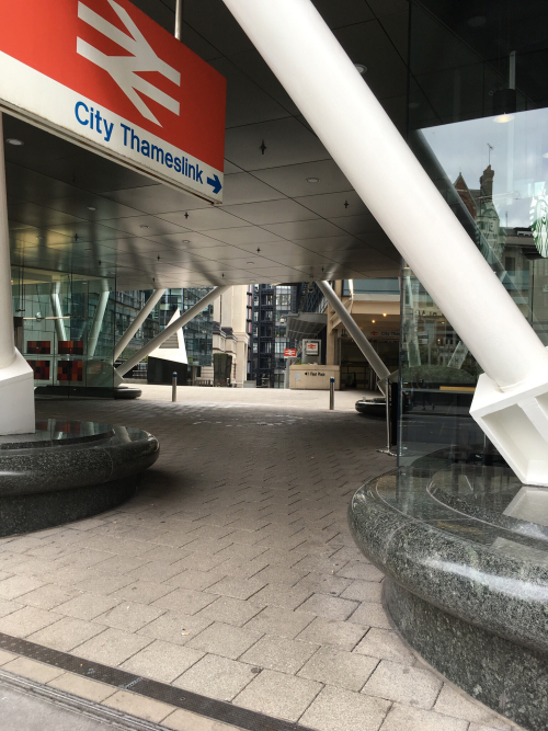 I enjoyed the many-layered angles of this view through a building to who-knows-where (besides the City Thameslink, that is):