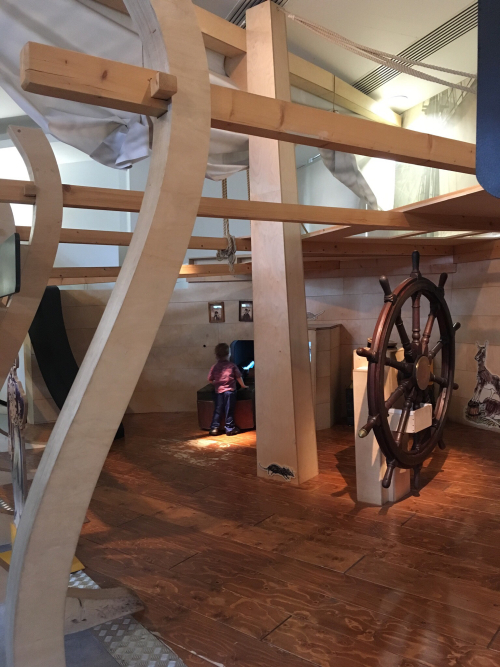 There are two children’s areas in the museum, but unfortunately the one with a big play structure was closed. This “children’s gallery” was just about as good, though. It contained fun activities but also items exhibited here in their own right, like real cannons and cannonballs and rigging equipment. Our three younger kids were in their element, but the teens enjoyed it too.