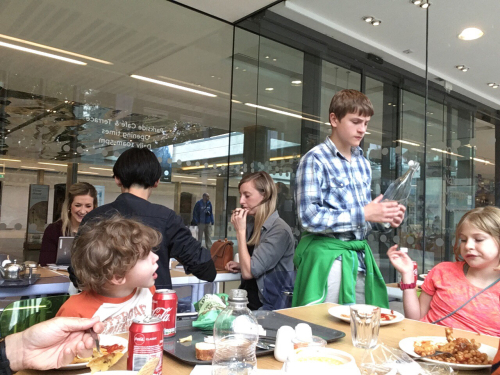 Museum cafés don’t seem to cost significantly more than regular restaurants here in London, especially if you factor in a small tip. The cafeteria format makes it easy for the littlest verbal children to choose what they want. There are often tables large enough to accommodate our entire family. They are located right where we want to be. And the food has been reliably good.