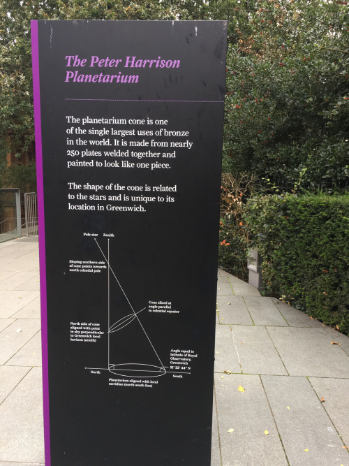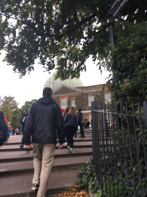 Through some windows in the Maritime Museum you can see a wide swath of green grass, now littered with leaves from the trees that dot it, criscrossed with walking paths, and sweeping up a high hill. Speaking of battle geography, and having just come from the castle-studded Aosta Valley not long ago it would be entirely unsurprising to my untrained eyes if the top of the hill were crowned by a fortress to watch over the flow of the Thames. But of course the sight of the base of that grassy hill thrills me not because of its military value, but because it is the site of the Observatory.