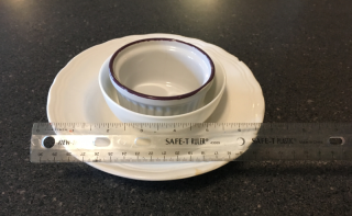 Shown below, stacked from bottom to top: (1) a bowl for first-course soups for Mark and teenagers, (2) a bowl for first-course soups for me and middle-size children, (3) a ramekin for first-course soups for smaller children: