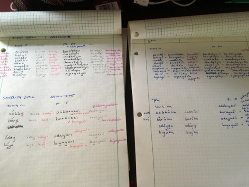 So my next step is a Big Sort, and then I can start thinking about nouns, "Well, this one declines like saaxibad" and I'll be able to start hanging them up one at a time.