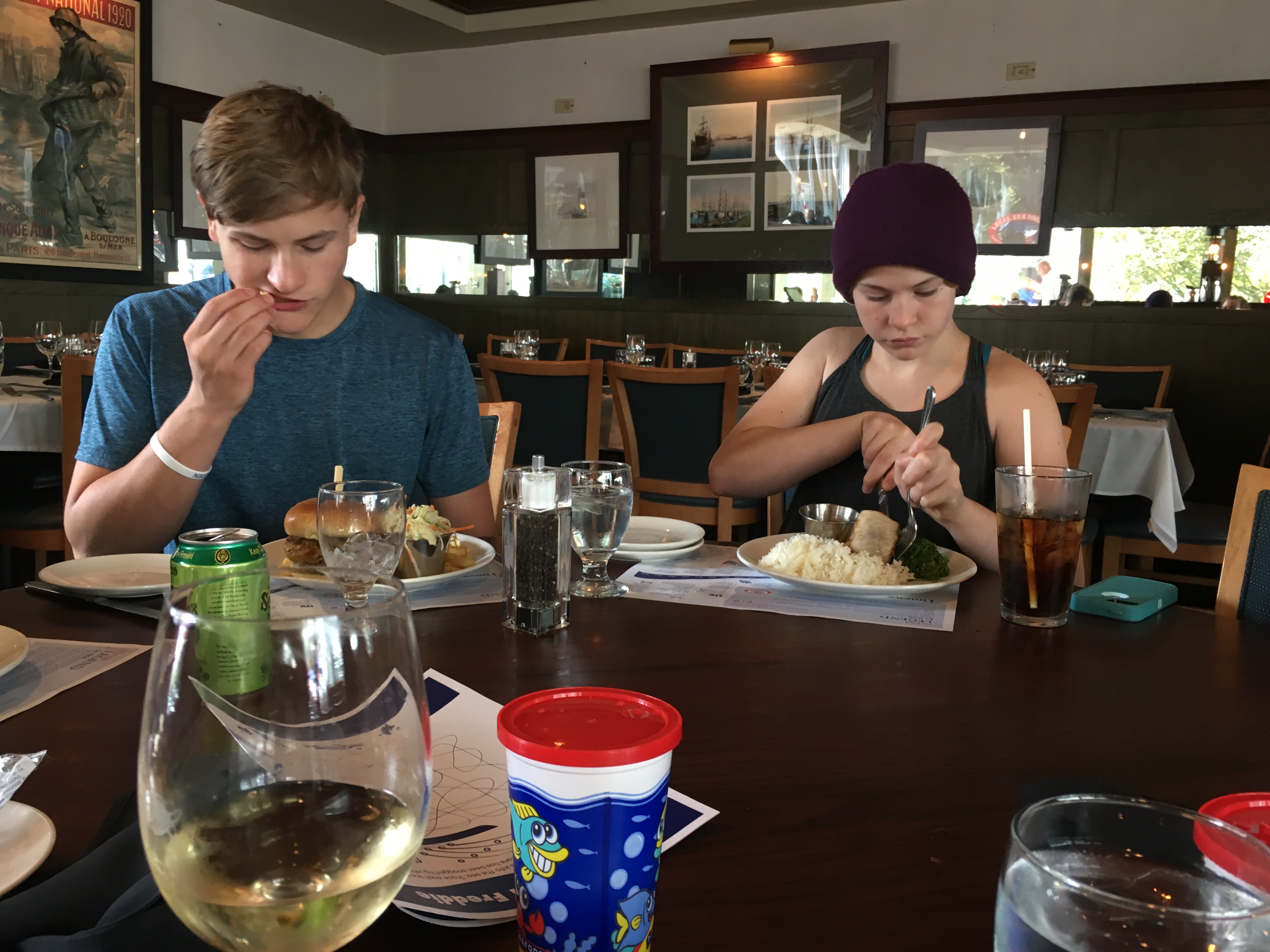 We had lunch at Legal Seafoods. I finally got my bowl of chowder, and a superior crab cake. There is lobster on the kids’ menu, but the younguns wanted macaroni and cheese and hot dogs.