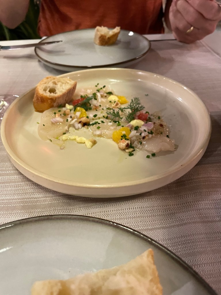 I’ll just highlight the food here. Scallop carpaccio with chunks of citrus