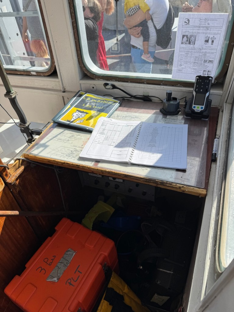 I don’t much like messing about in boats, but there is something I love about getting to see the inside of a working vessel when it is safely docked. The way all its parts fit compactly together like a puzzle, the abundant signage, the clever little racks and attachments that keep things where you left them, the low ceilings that cause sub-five-footers like me zero trouble, the way space is not wasted…