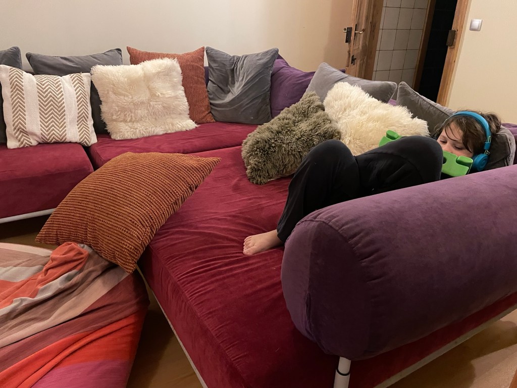 The house is so cozy but with plenty of room that it really makes me miss my college-age and grown kids. It has three bedrooms, two with double beds and one with a set of bunks, and we totally could have fit all seven of us once upon a time when children shared beds if we told them to and/or would have been happy to soend all their time on this sprawling sofa in TV room.