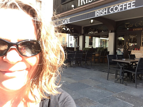 My first order of business was coffee. I found a corner place on the way to the beach and ordered a cappuccino. I had difficulty understanding the barista when she was trying to ask me if I wanted “cacao” on my drink, probably because I forgot that that is a thing one gets on cappucino and I wasn’t expecting it. I hear words I am expecting much more easily than words I am not expecting.