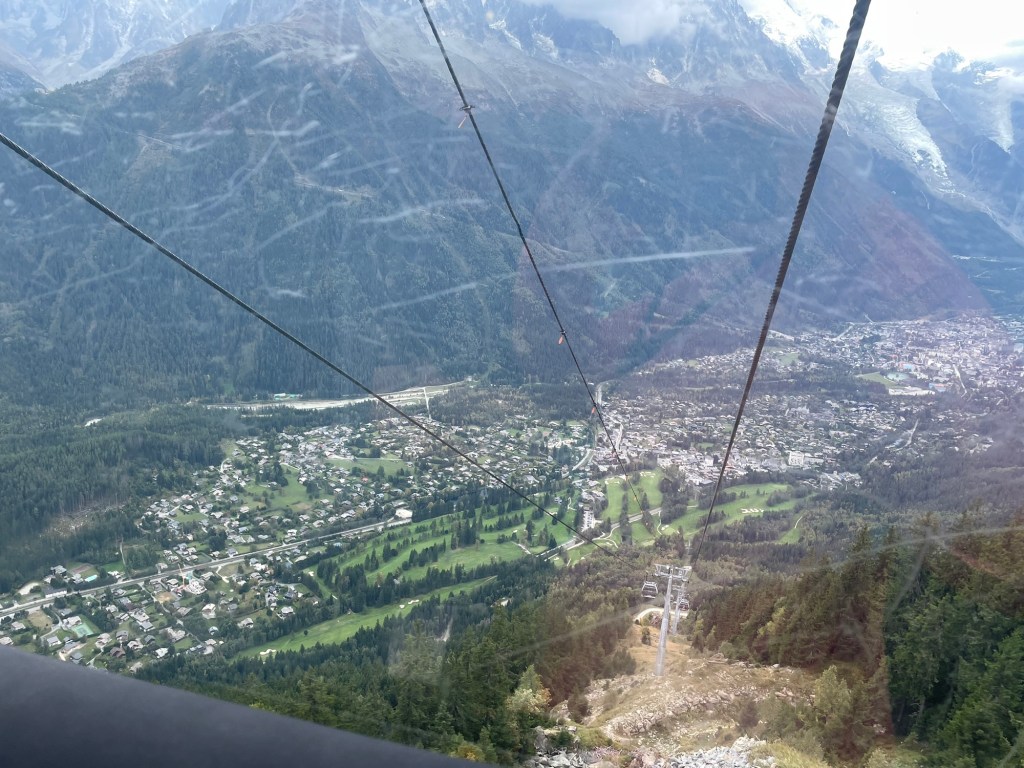 See the town below? That isn’t Chamonix, I think it’s maybe Les Houches based on the curve of the river, but it gives you an idea of the height.