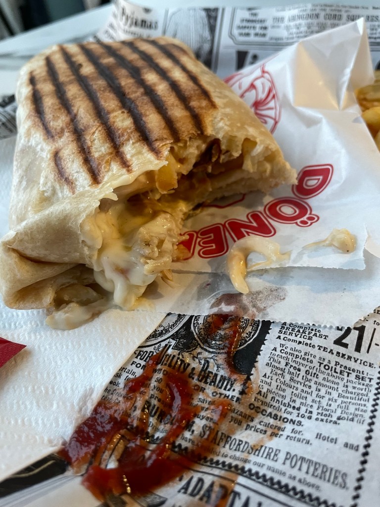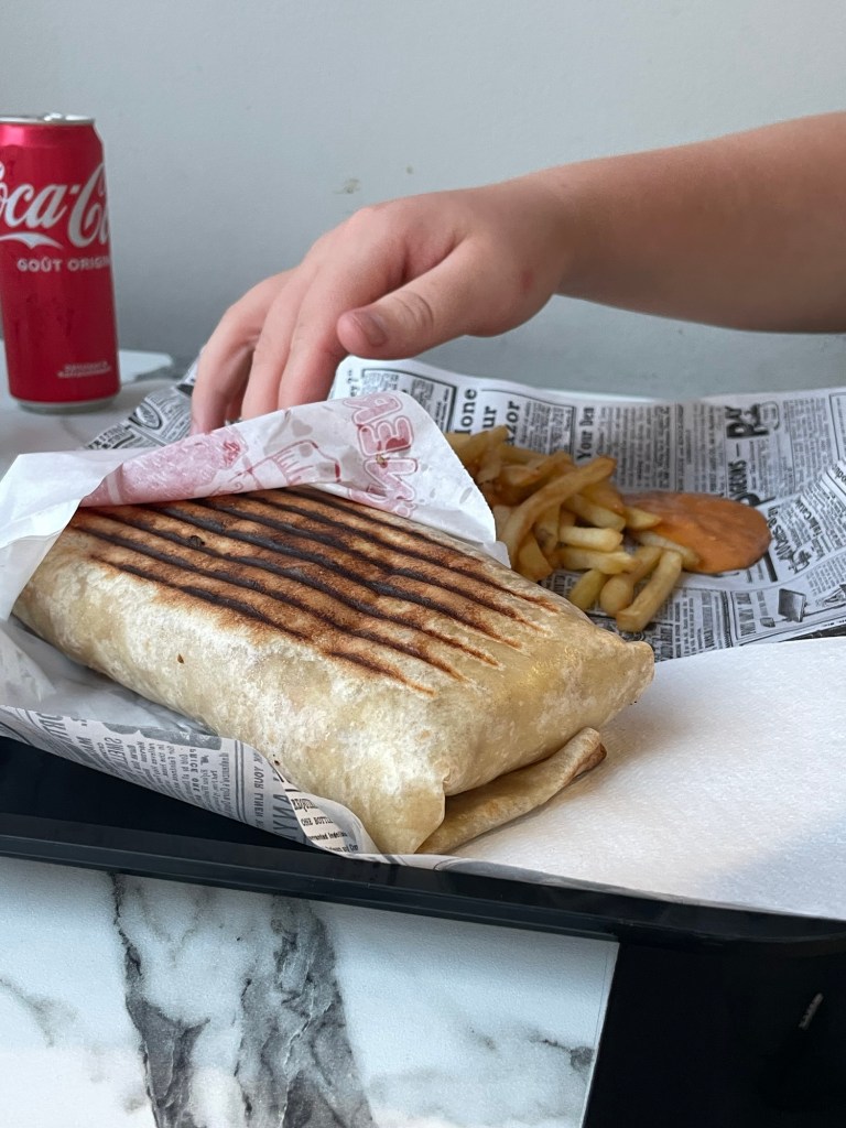 This taco is from Kebab Berlinois, which Leo has been visiting regularly since we got here. Previously he got les wraps. (I described eating some leftover wrap in a previous post.) As far as we can tell, the difference between le wrap and le taco is that le wrap contains pieces of cheese and is not grilled, but le taco contains cheese sauce and is grilled.