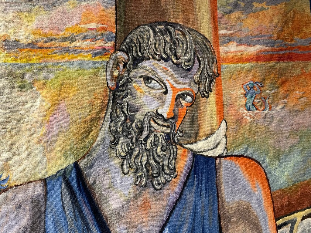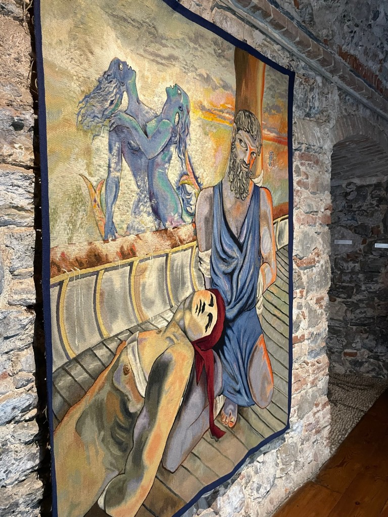The exhibits rotate every year. Right now, a lot of mythological-inspired pottery, some drawings on paper in various media, and a marvelous tapestry of Odysseus lashed to the mast.