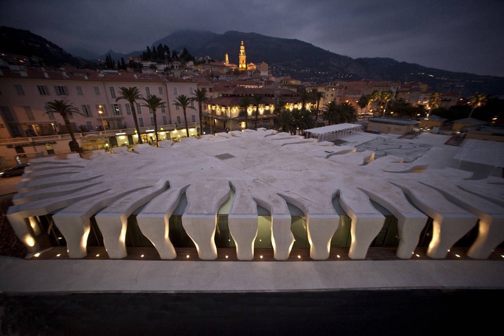 Menton is a town stretched out along a curved bay nestled against the very end of the Alps coming down to the sea.