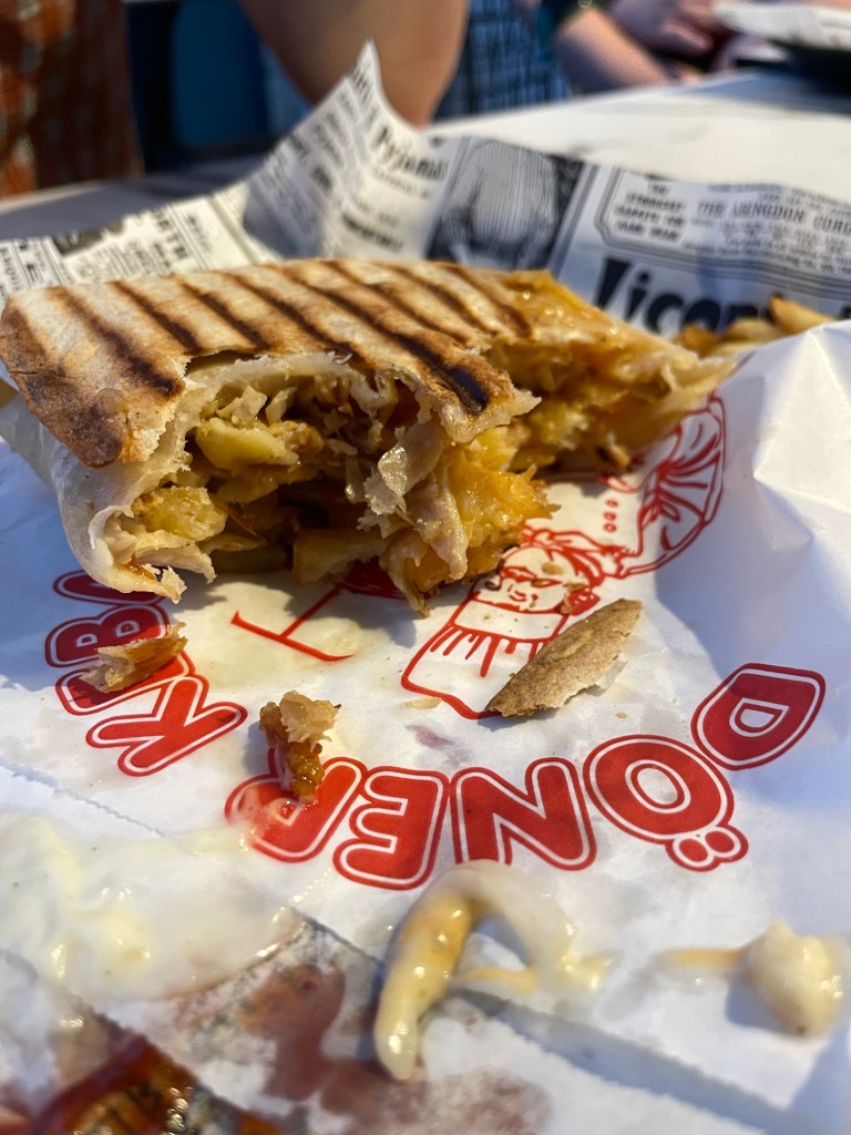 We were at Kebab Berlinois feeding the children combo meals (Simon had a cheeseburger) with the intention of taking the kids back to the apartment and then going out ourselves for a nice dinner. McDonald’s is close by to the kebab shop, so Leo headed over there to grab something quick to replace it, leaving Simon to work on his cheeseburger and leaving Mark and me alone with 95 percent of le taco.